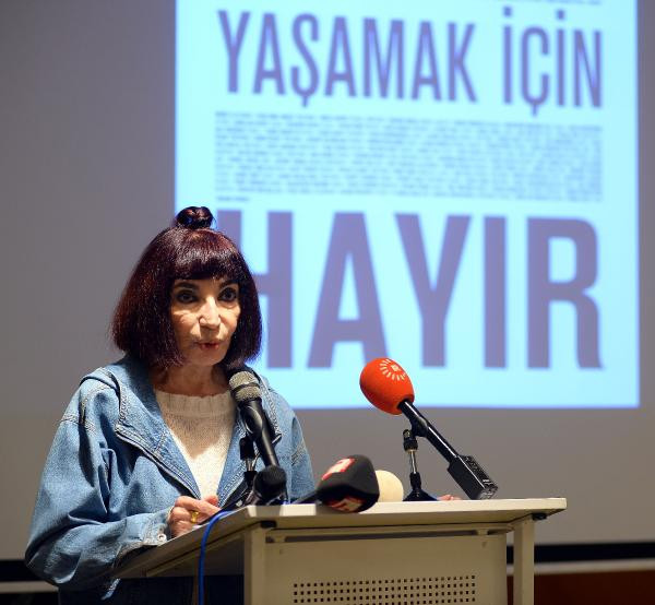 Sanatçı Edip Akbayram da, "50 senedir bu ülkede sanat adına bir şeyler yapmaya çalışıyorum. Ve biliyorum ki kardeşçesine yaşayabileceğimiz, çağdaş, demokratik, evrensel bir Türkiye için ben de 'Hayır' diyorum ve bu anayasayı reddediyorum" şeklinde konuştu.