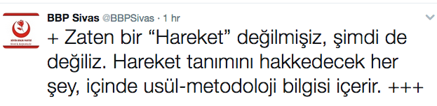 "BBP Genel Başkanı Destici'yi kaybettik HÜKÜMSÜZDÜR" twiti ile eleştirilerini sıralayan BBP teşkilatı arka arkaya şu mesajları paylaştı;