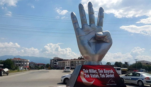 Erzurum Seçimleri- Düzce Belediyesi, Cumhurbaşkanı Recep Tayyip Erdoğan'ın meydanlarla sıkça tekrarladığı Rabia işaretinin heykelini dikti. Belediye Başkanı Mehmet Keleş, Erdoğan'ın simgesel işaretini ölümsüzleştirmek için böyle heykel çalışmasını yaptıklarını söyledi. Bu arada Rabia heykelinin bulunduğu yerde Atatürk heykeli vardı iddiaları ise yalanlandı.