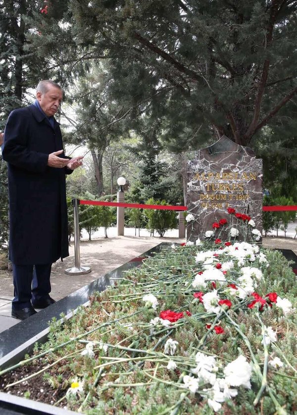 Cumhurbaşkanlığı Basın Merkezince paylaşılan görüntülere göre, Erdoğan, Beştepe Millet Kongre ve Kültür Merkezi'nde gerçekleşen 37. Muhtarlar Toplantısı'nın ardından Türkeş'in Beştepe'deki kabrine gitti.