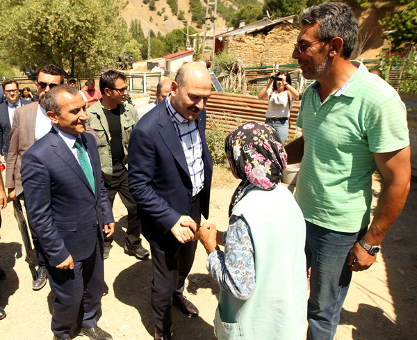 Geniş güvenlik önlemi altında gerçekleşen incelemelerde Bakan Soylu, Pülümür ilçesine bağlı Kırmızı Köprü köyüne geçerek, köylülerle bir araya geldi.