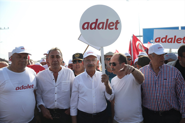 Kılıçdaroğlu'nun açıklamasının ardından kortej, "Hak, hukuk, adalet" sloganları ile yürüyüşe başladı. Yürüyüşe ellerinde süpürge olan bir grup partili de katılıyor. Kortejin yürüyüşü sırasında partililere sık sık provokasyonlara karşı dikkatli olunması uyarısında bulunuluyor. CHP milletvekilleri de kortejin içinde yürüyor.