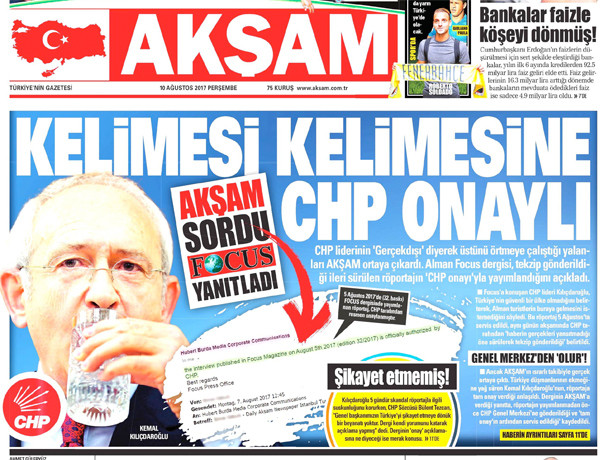 CHP’den, Alman Focus dergisindeki röportajla ilgili 5 gün sonra açıklama yapan Genel Başkan Yardımcısı ve Parti Sözcüsü Bülent Tezcan, Kılıçdaroğlu’nun böyle bir beyanatının olmadığını savunmuştu.