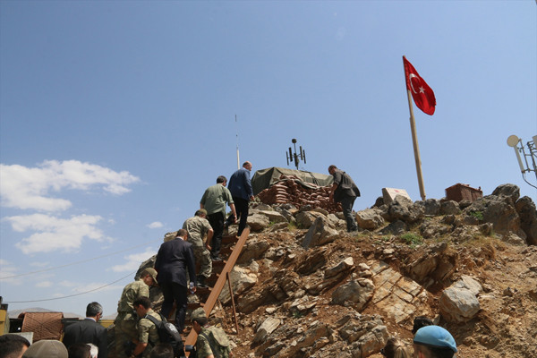 Burada çocukların çiçek verdiği Soylu, beraberindekilerle helikopterle Çukurca ilçesindeki Dağbaşı üs bölgesine giderek yapımı süren Dağlıca-Çukurca yolunda incelemelerde bulundu.