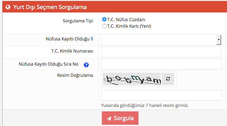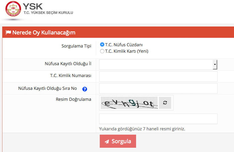 TC NO İLE SANDIK SORGULAMA NASIL YAPILIYOR: YSK sandık sorgulama ekranına girdiğinizde önünüze aşağıdaki gibi bir ekran gelecek. Nüfusa kayıtlı olduğunuz ili ve TC kimlik numarınızı yazdıktan sonra resim doğrulama kısmında gördüğünüz harf ve rakamları yazın. Ardından sorguma tuşuna basın. Nerede oy vereceğim sorunuzun yanıtı anında önünüze gelecek. Sandık sorgulama için aşağıdaki görsele tıklamanız yeterli;