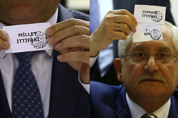 Kura sonucuna göre, soldan sağa doğru 1'inci sırada Cumhur ittifakı, 2'nci sırada HÜDA-PAR, 3'üncü sırada Vatan Partisi, 4'üncü sırada HDP, 5'inci sırada BTP, 6'ncı sırada ise Millet İttifakı yer alacak.İttifakların kendi içerisindeki sıralamasında ise, Cumhur İttifakı'nda 1'inci sırada AK Parti, 2'nci sırada MHP yer aldı.Millet İttifakı'nda CHP, 1'inci, Saadet Partisi 2'nci, İYİ Parti 3'üncü sırada yer aldı.